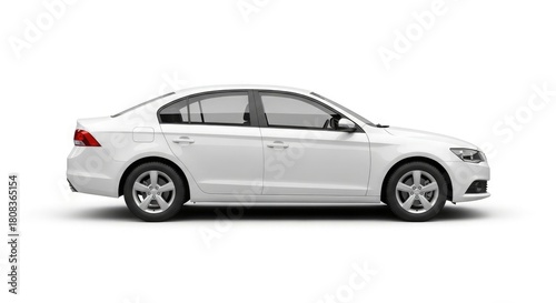 A white sedan car is shown in a studio shot, displayed from the side view against a white background.