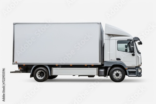 A white truck parked on a white surface. Suitable for transportation, logistics, and delivery concepts