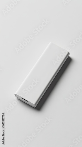 A white USB drive rests on a light grey surface, showcasing its sleek design