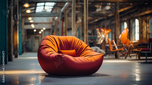 A wide photo of an isolated beautiful orange color cozy sofa in a middle of big hall