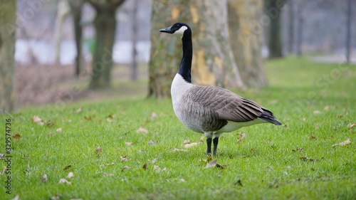 A wild goose standing on green grass in the park