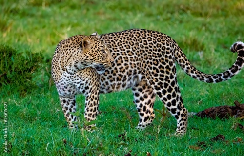 A wild Leopard seen on a safari in the Maasai Mara reserve in Kenya africa