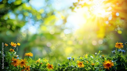 A wildflower summer floral frame featuring a mix of colorful wildflowers such as cornflowers, marigolds, and black-eyed Susans
