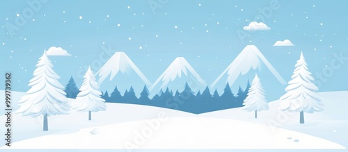A winter background with snow-capped mountains and trees, in a simple, flat vector style.