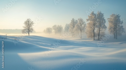 A winter landscape featuring soft snow, creating a serene atmosphere.