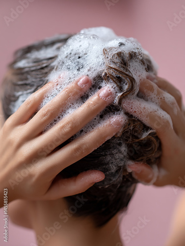 A Woman Enjoying a Relaxing Hair Wash with Lathering Shampoo
