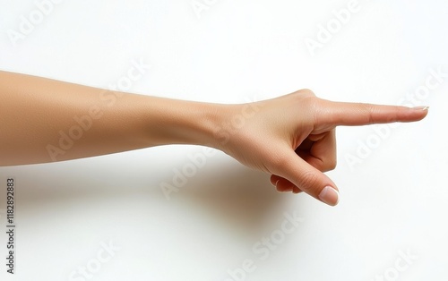 A woman hand pointing right, isolated on a clean white background