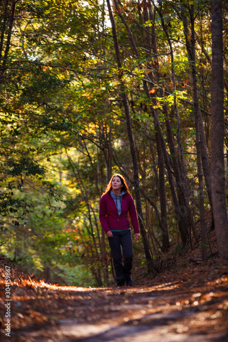 A woman hikes along the Nags Head Town Trail at sunset. The trail is the southern most trail in the preserve and one of two that leads to great views of Roanoke Sound, especially at sunset.