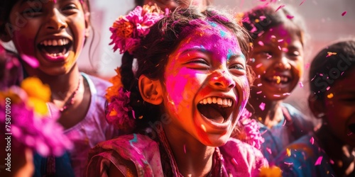 A woman immersed in the vibrant festivities of Holi, adorned in colorful attire and exuding joy.