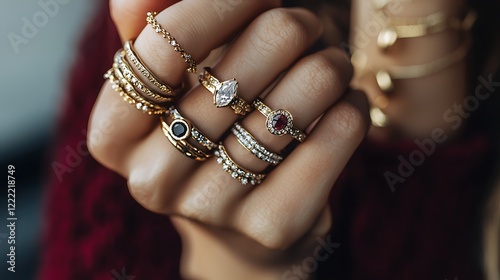 A woman is holding a hand full of rings and bracelets
