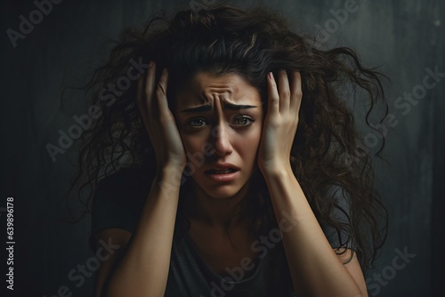 A woman overwhelmed with stress and concern confusion. Nervous looking woman.