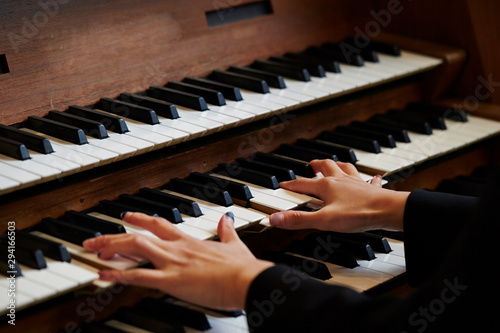 A woman playing the pipe organ