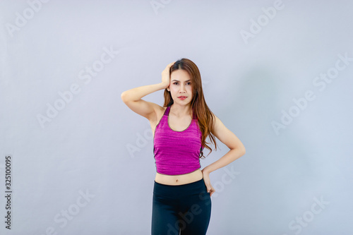 A woman showing headaches Individual pain symptoms