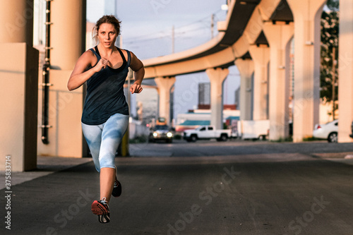 A woman sprinting on a road
