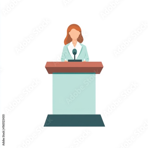 A woman stands at a podium, likely giving a speech or presentation.