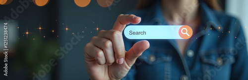 A Woman Uses A Virtual Search Bar With A Magnifying Glass Icon To Find Information Online Through Search Engines Everyday. 00002