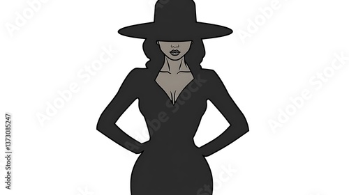 A woman wearing a hat and dress standing with hands on hips