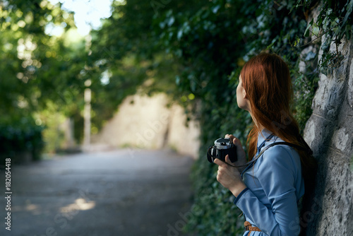 A woman with a camera takes pictures