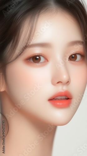 A woman with brown eyes and a pink lip is shown in a blurry photo