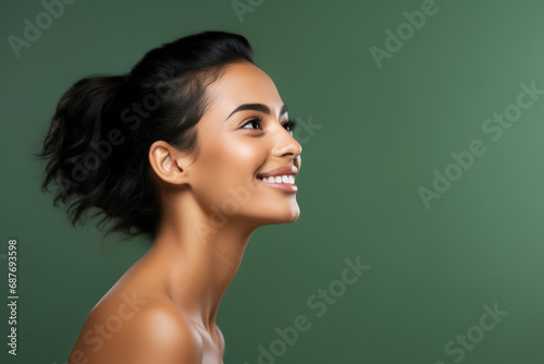A woman with her hair in a ponytail is smiling