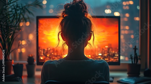 A woman works late into the night at the office, demonstrating dedication and commitment to her tasks.