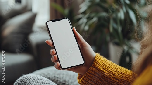A Woman's Hand Holding a Smartphone with a Blank Screen