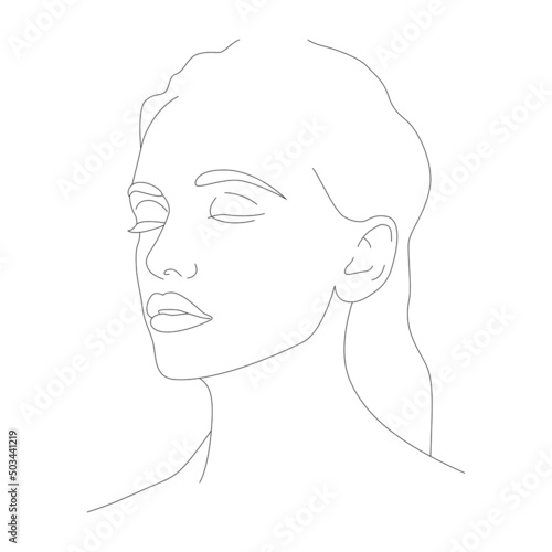 A woman's head. Hand-drawn vector linear art illustration. Drawing in the style of one line. The face is one line. A woman's face. Portrait of minimalism.