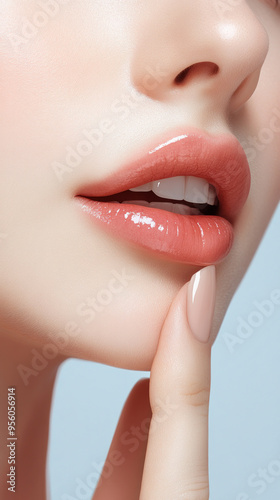 A woman's lips are painted with a bright red lipstick. Concept of confidence and boldness, as the woman's lips are the focal point of the picture