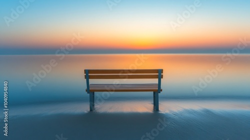 A Wooden Bench by the Sea at Sunset