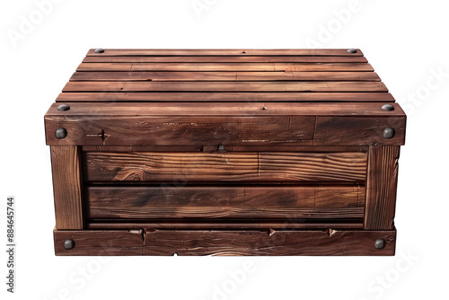 A wooden chest with four strips of wood. The top lid is closed and made from dark brown wood in the style of a game asset icon