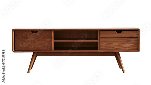 A wooden entertainment center with two drawers