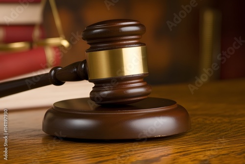 A wooden gavel is placed on a polished desk, indicating the seriousness of legal matters. Generative AI