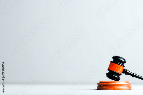 A wooden gavel rests on its base, symbolizing justice and authority in a minimalist setting.