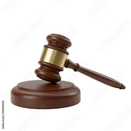A wooden gavel rests on its circular base, symbolizing justice and authority in a courtroom setting isolated on white or transparant background, PNG format.