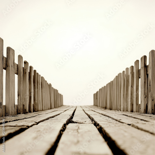 A wooden pathway extends into the distance, bordered by rustic fences, under a soft, overcast sky.