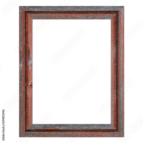 A wooden picture frame with a rustic design, empty and ready for an artwork or photo.