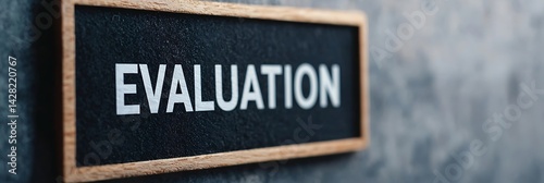 A wooden sign displaying the word "EVALUATION" against a textured gray background, suggesting themes of assessment or review.