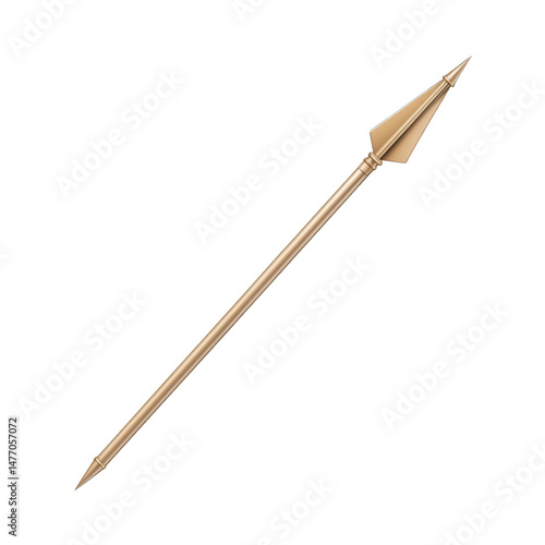 A wooden spear with a sharp, pointed tip, designed for hunting or ceremonial purposes, displayed against a white isolated background for emphasis.