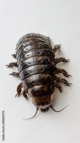 A woodlouse curled up on a white background ar 916 98 3 insect, isolated, macro, animal, bug, nature, white, fly, close-up, wildlife, wasp, brown, antenna, closeup, beetle, bee, food, detail, white ba