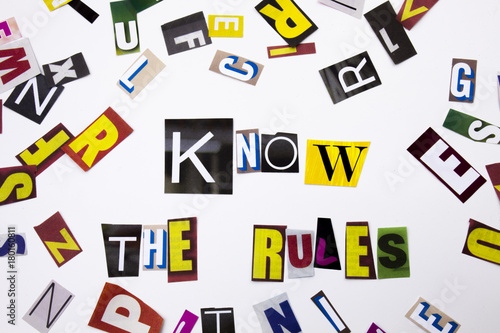 A word writing text showing concept of Know The Rules made of different magazine newspaper letter for Business case on the white background with copy space