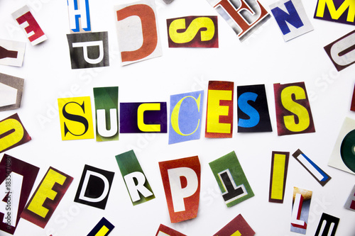 A word writing text showing concept of Success made of different magazine newspaper letter for Business case on the white background with copy space