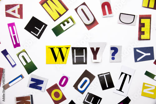 A word writing text showing concept of Why question made of different magazine newspaper letter for Business case on the white background with copy space