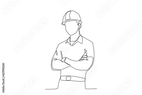 A worker proudly wears work clothes. Labor Day one-line drawing