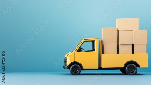 A yellow delivery truck carrying stacked boxes against a blue background, symbolizing logistics and shipping services.