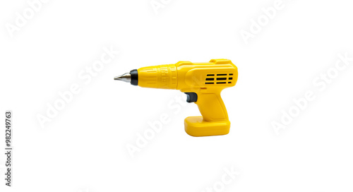 A yellow plastic power drill with a black handle on a white background