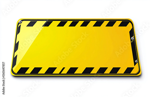 A yellow rectangular sign with black stripes on the borders isolated on a white background