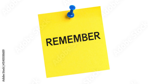 A yellow sticky note pinned with a blue pushpin displaying the word "REMEMBER" in bold black letters.