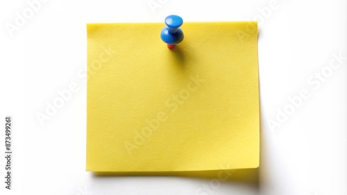 A yellow sticky note with a blue pin on it