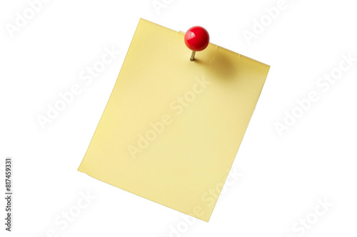 A yellow sticky note with a red pin isolated on a white background, in the style of a png photo stock.