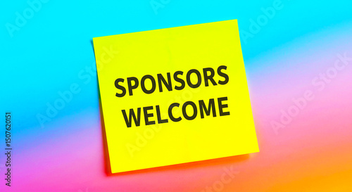A yellow sticky note with sponsors welcome text on a colorful gradient background is displayed well